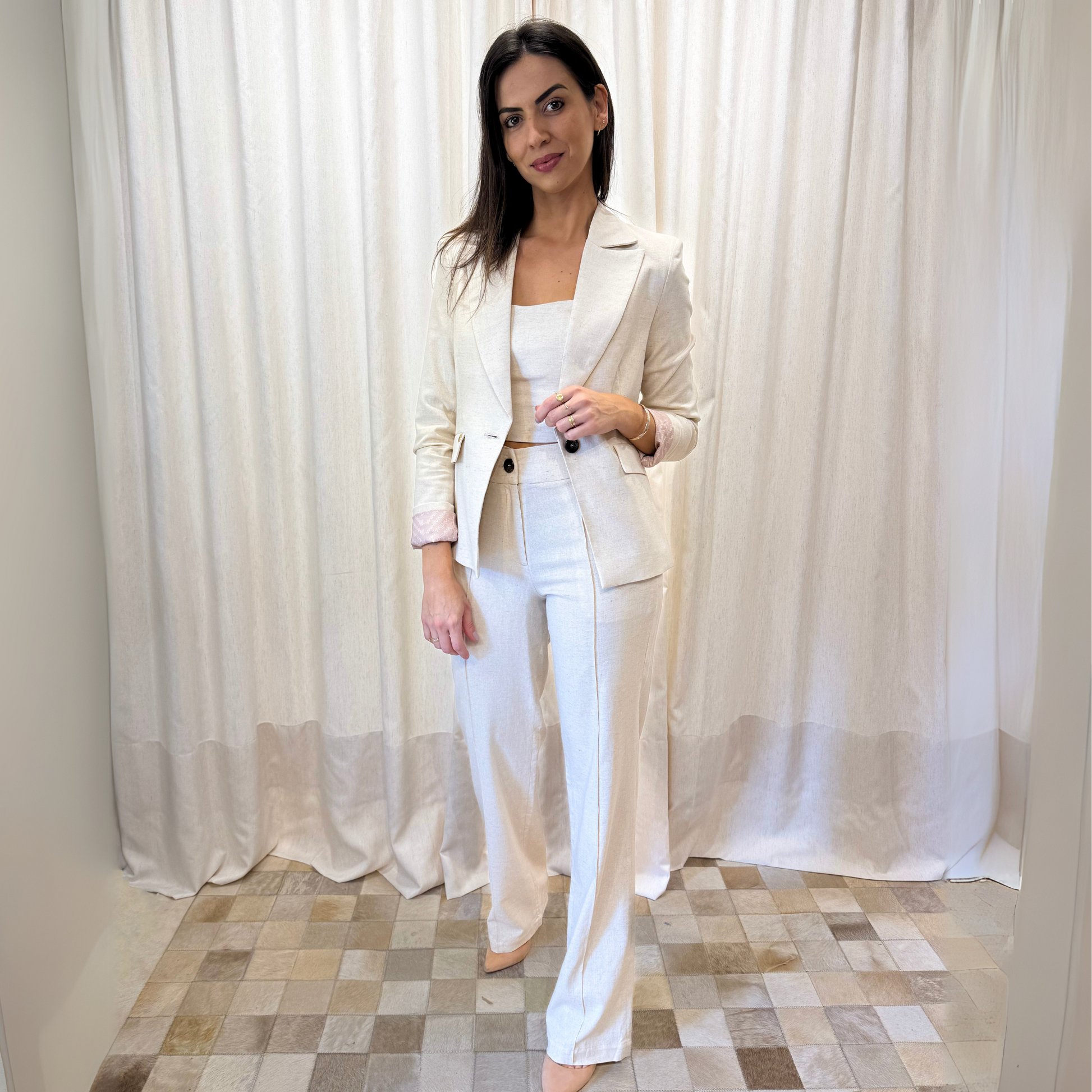 CALÇA ALFAIATARIA COM FRISO EM LINHO