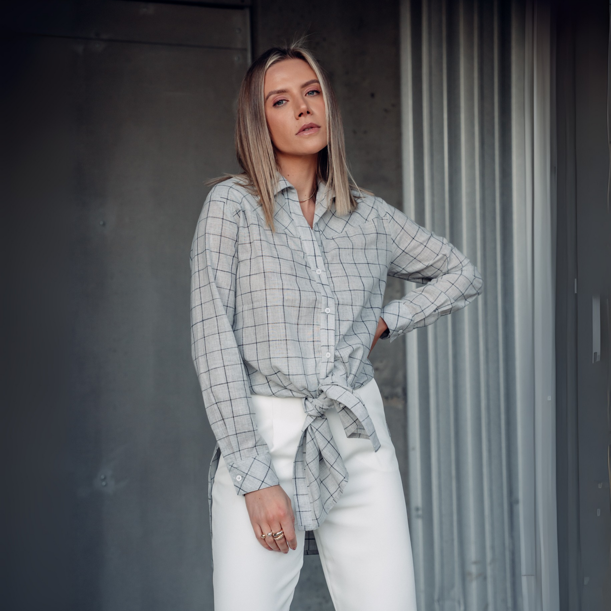 Com caimento impecável e visual contemporâneo, essa peça é feita para transitar entre o trabalho, o café e o fim de semana. Fendas laterais que permitem amarração frontal. Use solta, com nozinho ou como sobreposição. Um xadrez moderno para vestir seus dias com liberdade.