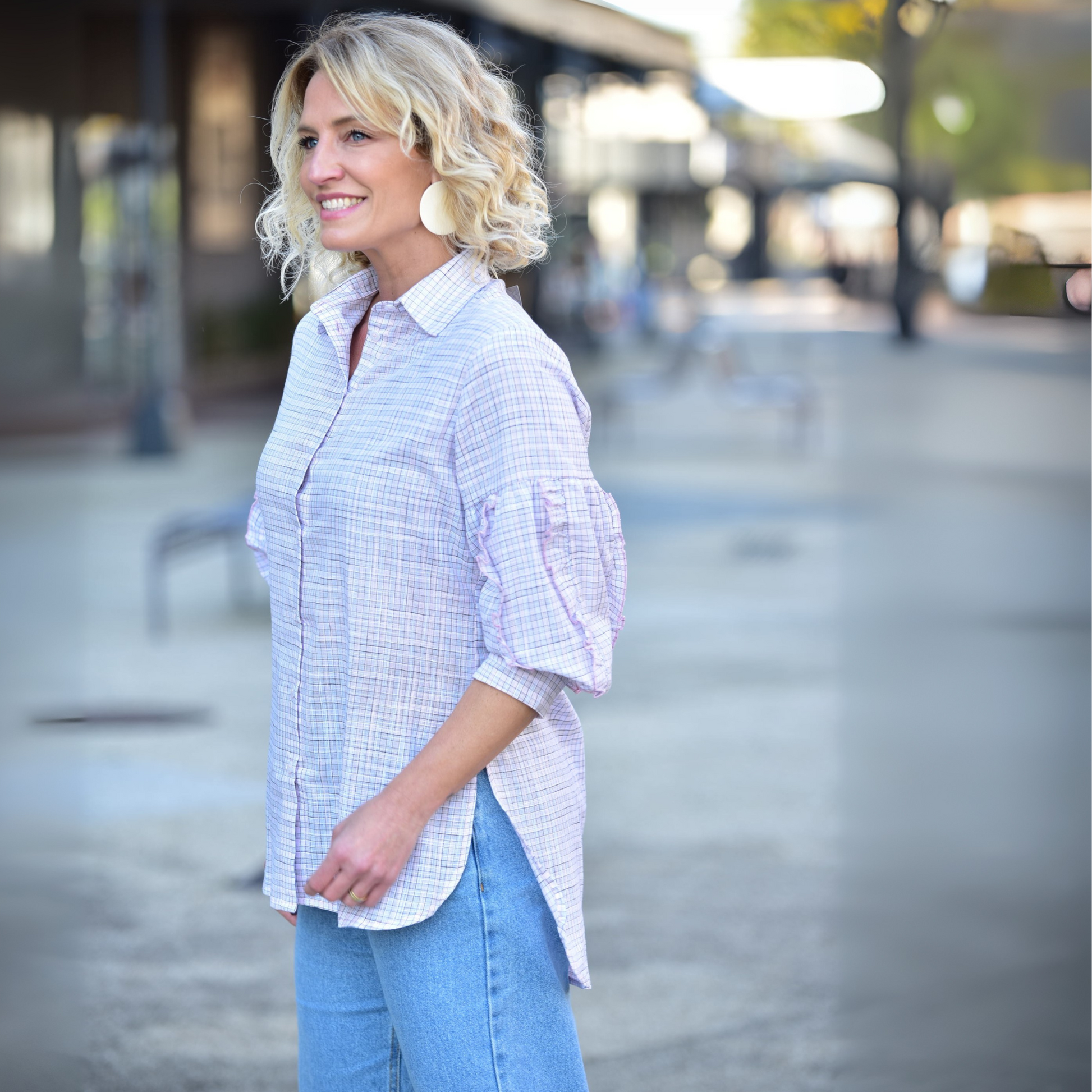 O algodão leve acompanha o movimento do corpo, enquanto o babado nas mangas e o recorte arredondado dão charme sem esforço. Para quem busca leveza, conforto e versatilidade no vestir - seja com jeans, alfaiataria ou sozinha, em dias de sol.